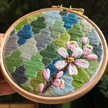 I honestly didn’t intend to be away for so long. I am taking a very brief respite between groups of house guests to catch up on my recent creative endeavours.  Despite the quiet on the blogging front, I have been up to all kinds recently. I have finished this hoop. I cannot express how happy … More Inspiration to Realisation – Almond Blossom on Tiled Background